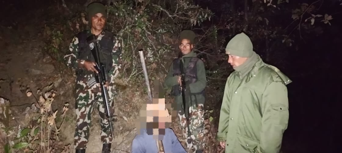 निकुञ्ज सुरक्षार्थ खटिएको सिंह शार्दूल गुल्म र निकुञ्जका कर्मचारीहरूको संयुक्त गस्ती टोलीले उनलाई शनिबारबार पक्राउ गरेको खप्तड राष्ट्रिय निकुञ्जका वार्डेन सरोज मणि पौडेलले जानकारी दिए । उक्त व्यक्तिलाई राष्ट्रिय निकुञ्ज तथा वन्यजन्तु संरक्षण ऐन २०२९ बमोजिम अनुसन्धान हुने र अवैध हातहतियार लिएर रातको समयमा जङ्गल प्रवेश गरेकोले हातहतियार तथा खरखजाना सम्बन्धी ऐन बमोजिम अनुसन्धानको लागि जिल्ला प्रहरी कार्यालय अछाममा बुझाइने वार्डेन पौडेलले जानकारी दिए ।